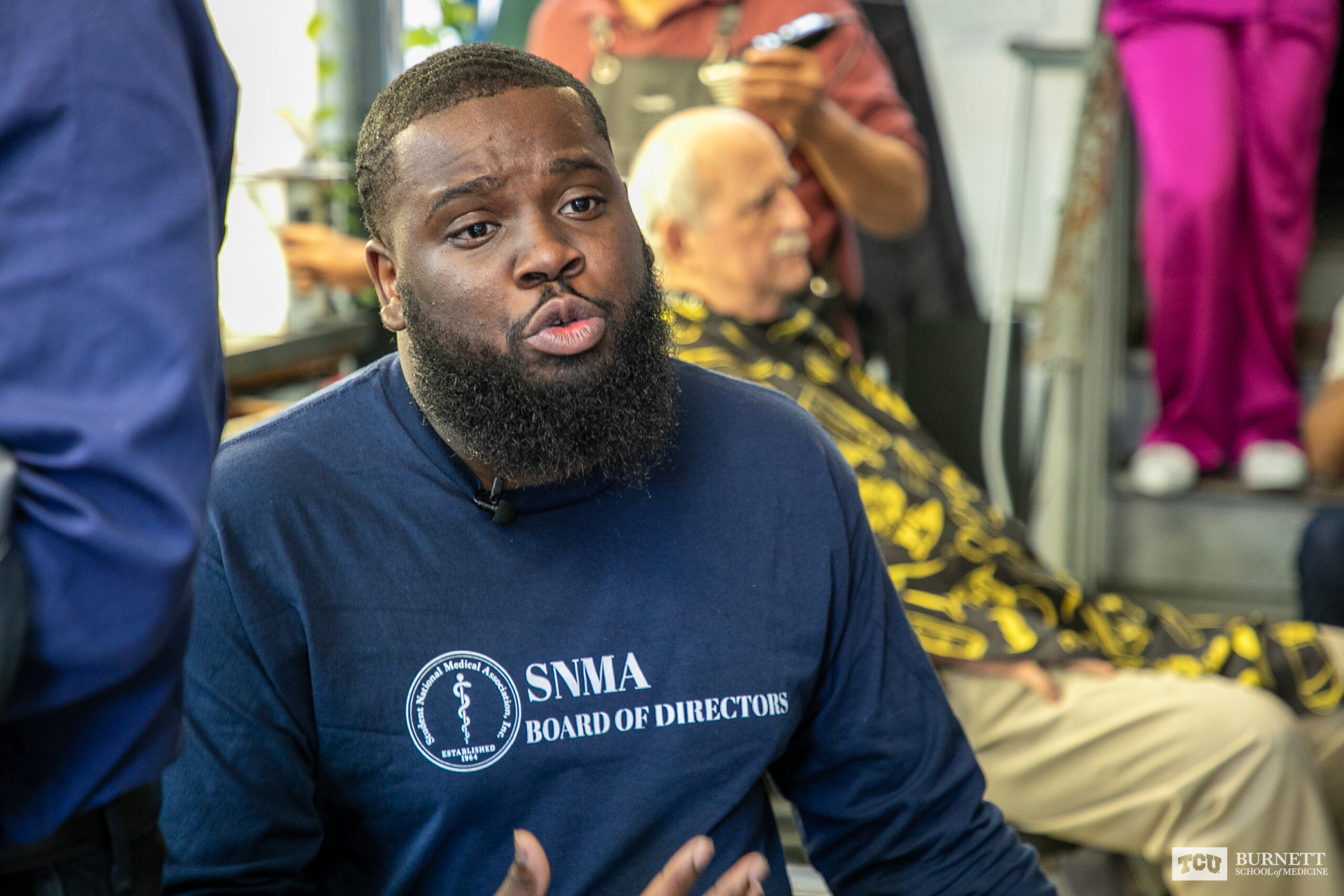Antonio Igbokidi, MS-4 at Anne Burnett Marion School of Medicine at Texas Christian University, provided free therapy, 500 free health screenings and 250 free haircuts for men of color across the nation as part of the medical student’s Scholarly Pursuit & Thesis (SPT) Research Project.